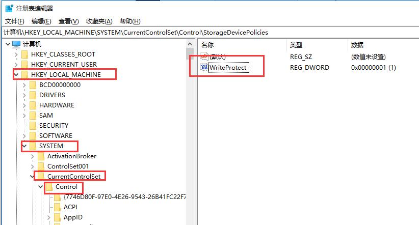 - 注册表writeprotect