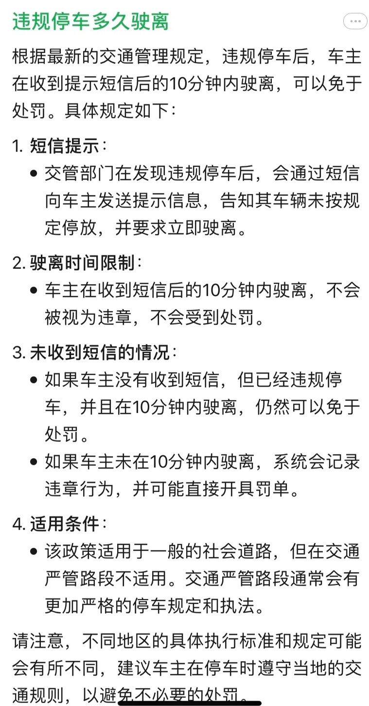 - 收到短信违法停车请尽快驶离