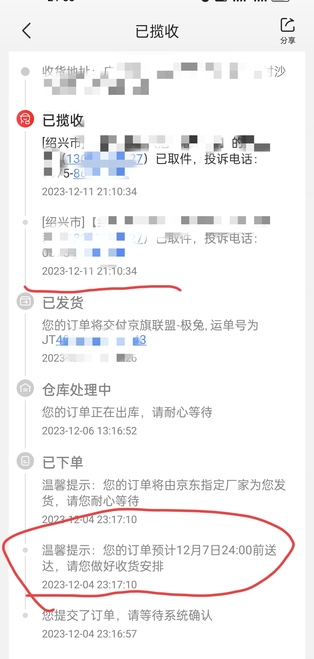 - 京东快递取件短信模板
