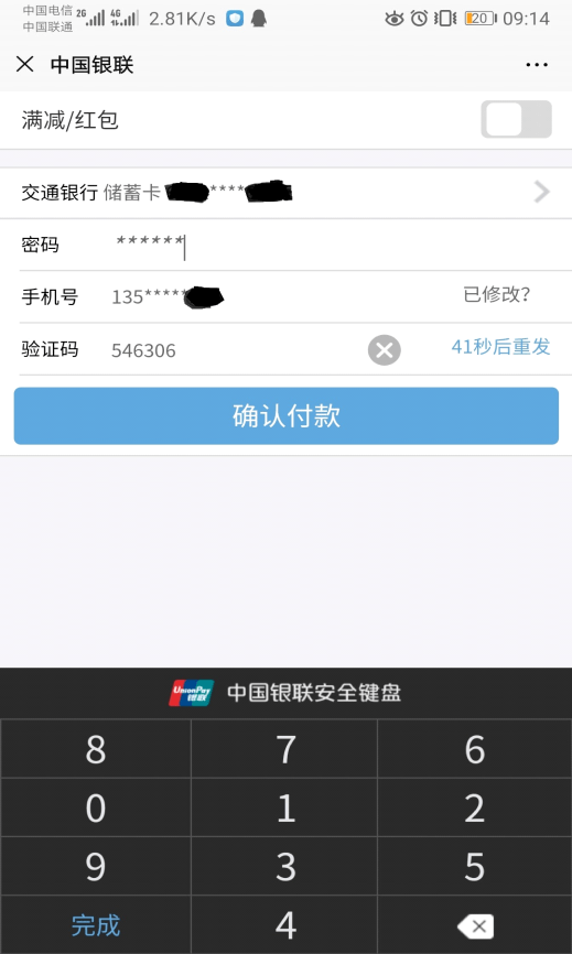 - 收到银行支付验证码