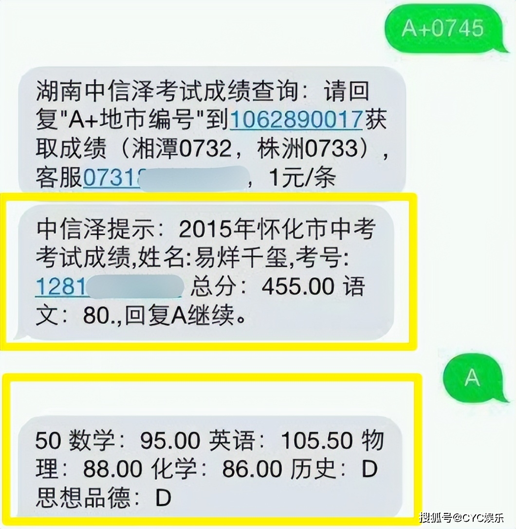 - 短信查询中考成绩要收费吗