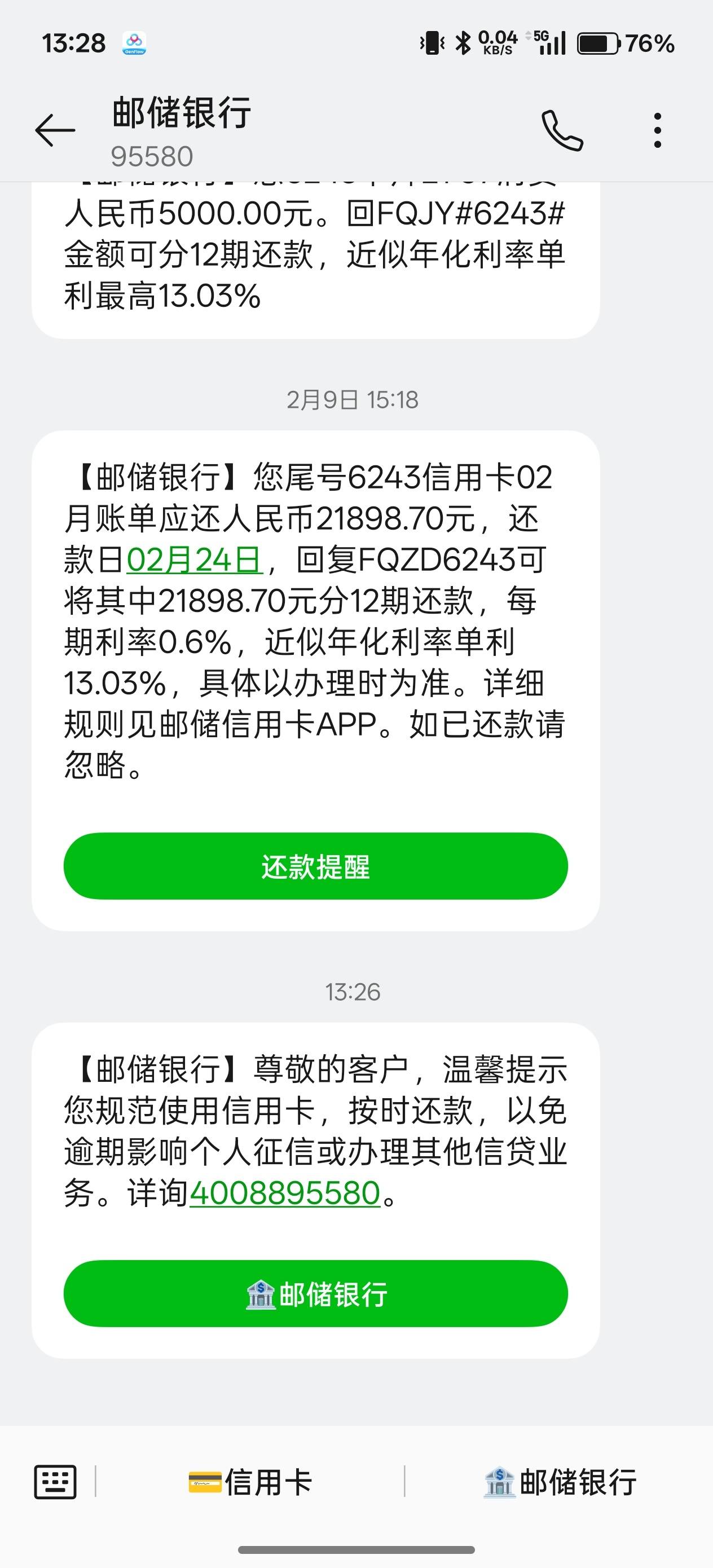 - 收到短信说银行卡到期