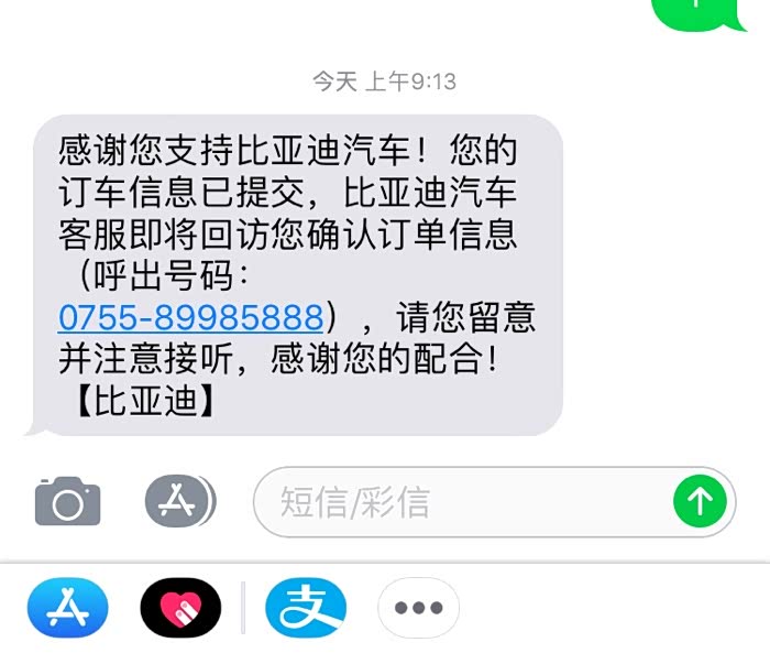 - 比亚迪订车短信