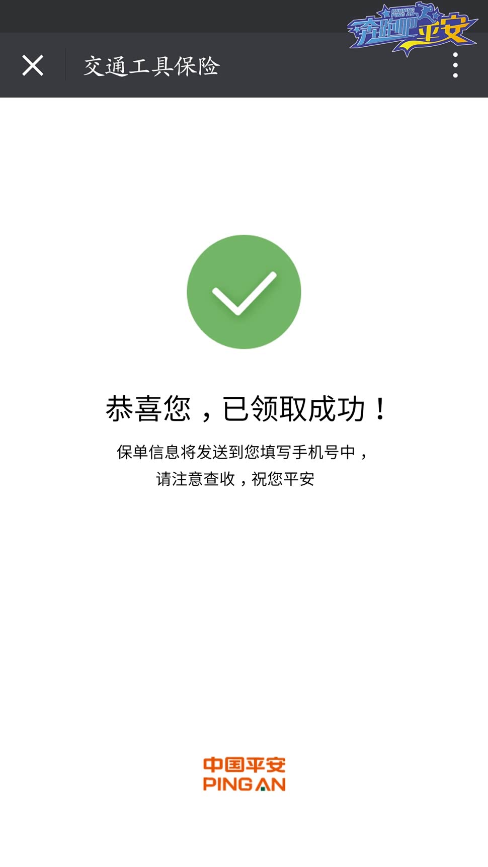 - 短信收到平安产险的短信说已投保成功