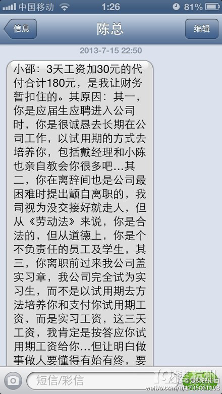 - 怎么发短信给老板要工资